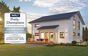 Hanse Haus wurde im April 2021 von ServiceValue und DIE WELT als "Preis-Champion" ausgezeichnet. Bereits zum dritten Mal in Folge konnte Hanse Haus mit der Preisgestaltung am stärksten überzeugen und belegt den ersten Platz in der Kategorie der Fertighausanbieter.