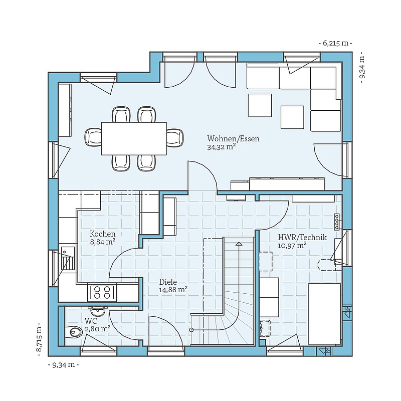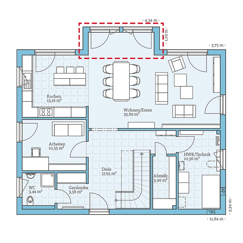 Einfamilienhaus-Grundrisse mit 134 m² Grundfläche – Planungsoption Erker & ausgelagerter Technikraum