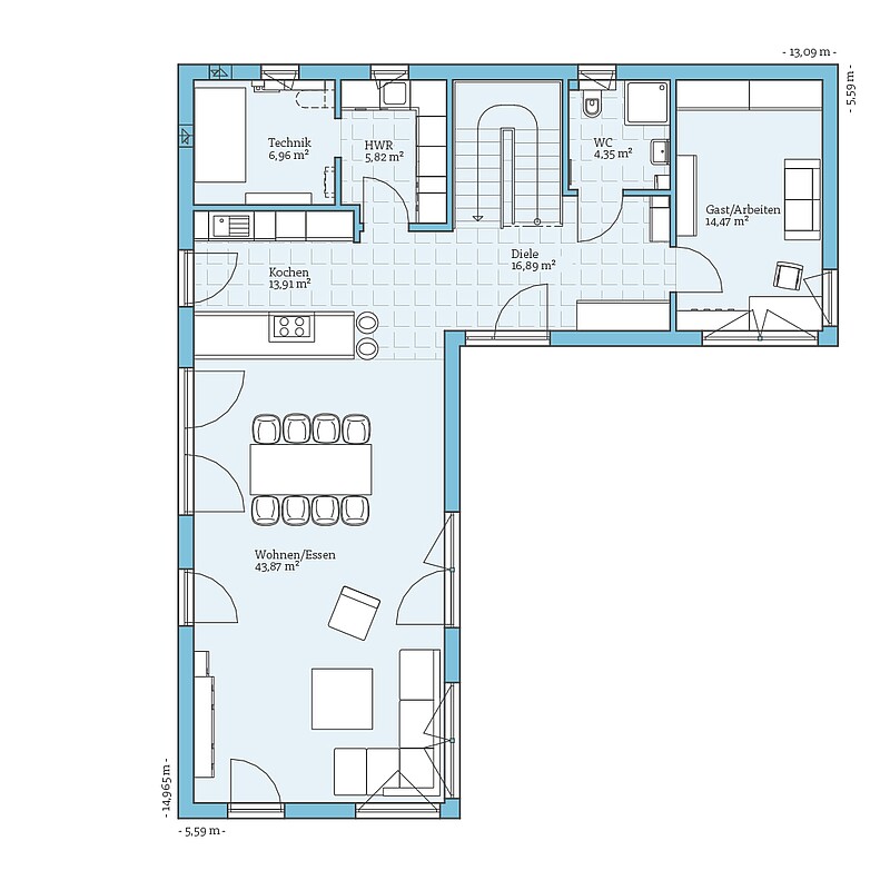 Einfamilienhaus-Grundrisse mit 166 m² Grundfläche – Planungsoption Erdgeschoss