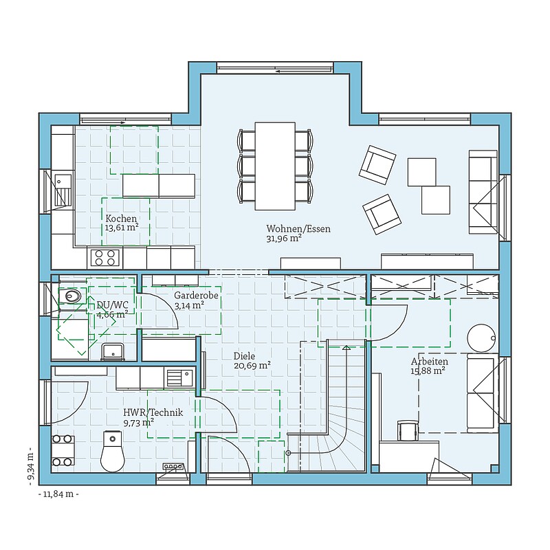 Einfamilienhaus-Grundrisse mit 139 m² Grundfläche – Planungsoption Windfang
