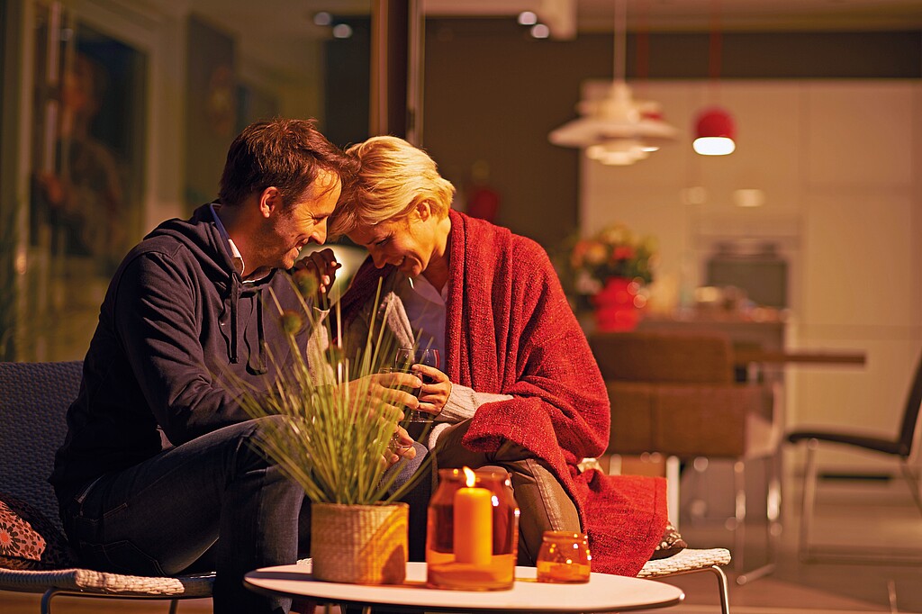 Der Bungalow überzeugt nicht nur mit seinem luftigen Ambiente, sondern auch mit praktischen Planungsdetails: Neben dem Bad befindet sich ein kleiner Wäscheraum und in der Diele sind ein Gäste-WC und genug Platz für eine große Garderobe eingeplant.