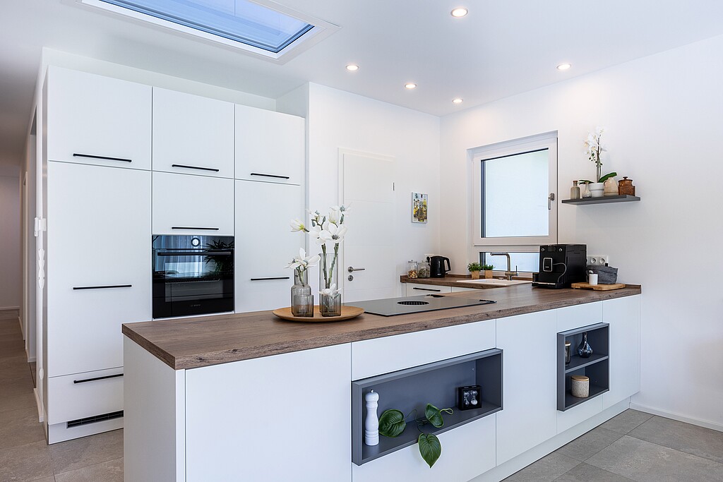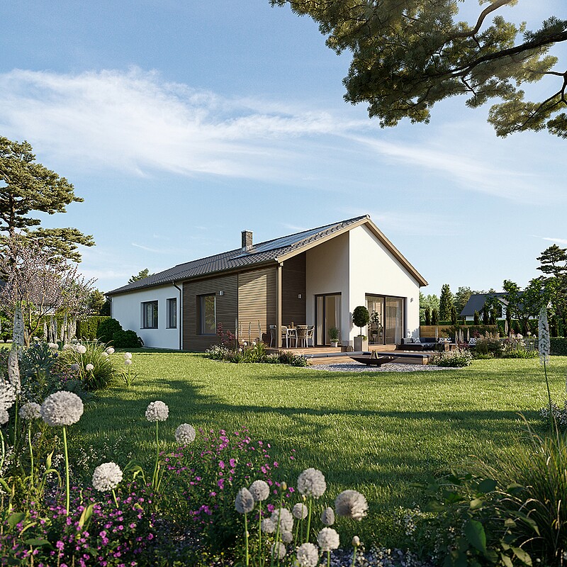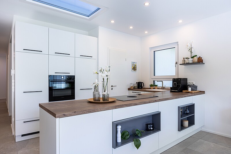 Der Bungalow begeistert durch seine hellen und lichtdurchfluteten Räume. Dank des Tageslichtspots im Flur und den beiden Ceiling Windows, welche in der Küche und im Badezimmer verbaut sind, fällt viel natürliches Tageslicht in das Haus. Mit den Ceiling Windows können Sie jederzeit den Ausblick in den Himmel genießen.