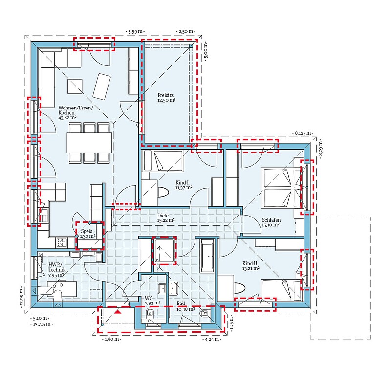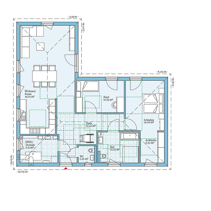 Da die Häuser aus der QNG+-Line seriell gefertigt werden, ist keine individuelle Planung möglich. Trotzdem stehen Ihnen einige Planungsmöglichkeiten offen: