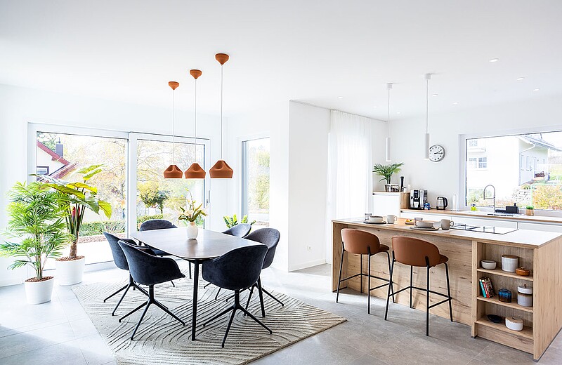 Das QNG⁺-Line Variant 35-165 bietet auf 144,5 m² Wohnfläche viel Platz für Familienleben und individuelle Rückzugsorte. Der offene Wohn- und Essbereich bildet im Erdgeschoss den Mittelpunkt des Hauses. Ein zusätzliches Arbeits- oder Gästezimmer sorgt für Flexibilität.