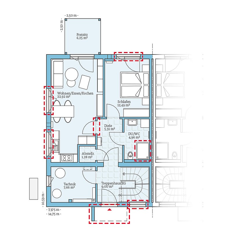 - Schlüsselfertig: ab 412.337 € pro Haushälfte