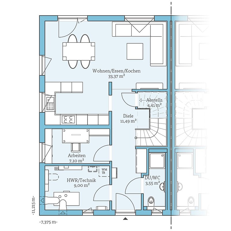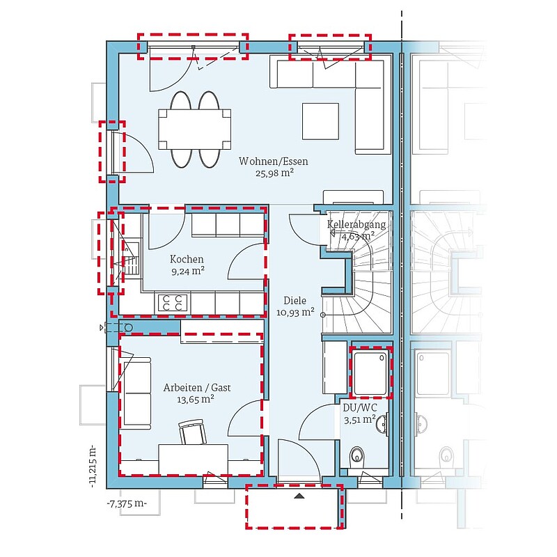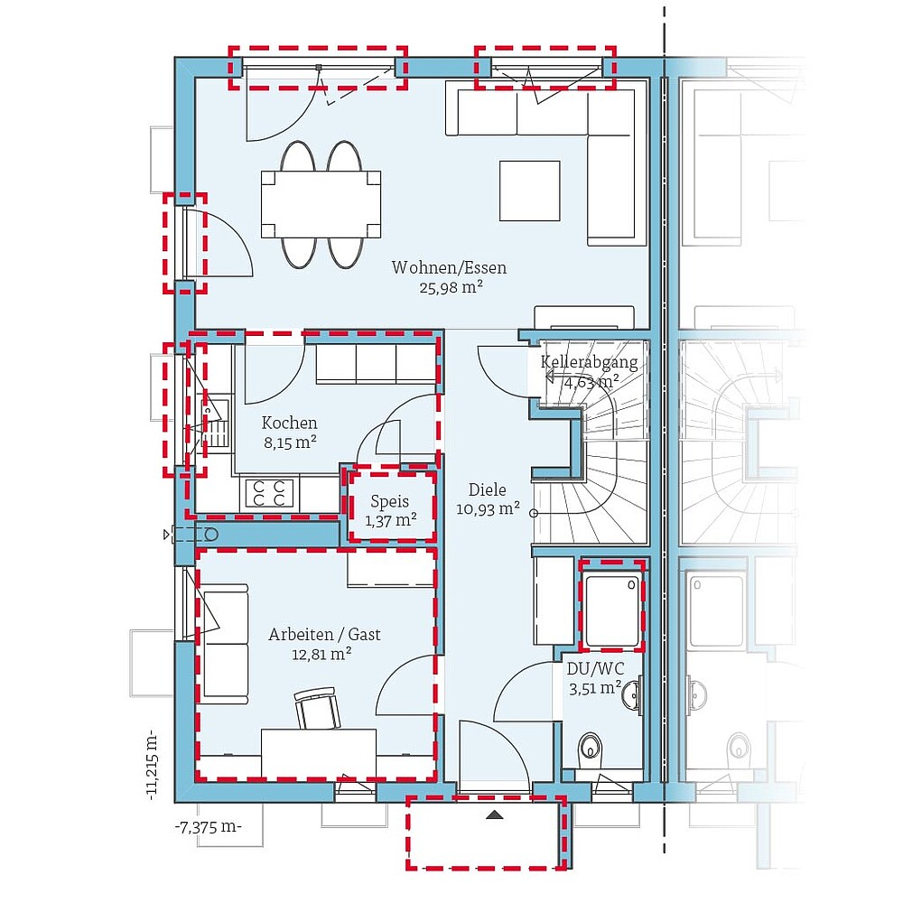- Mit Keller: Gäste-/Arbeitszimmer statt Hauswirtschafts- und Technikraum