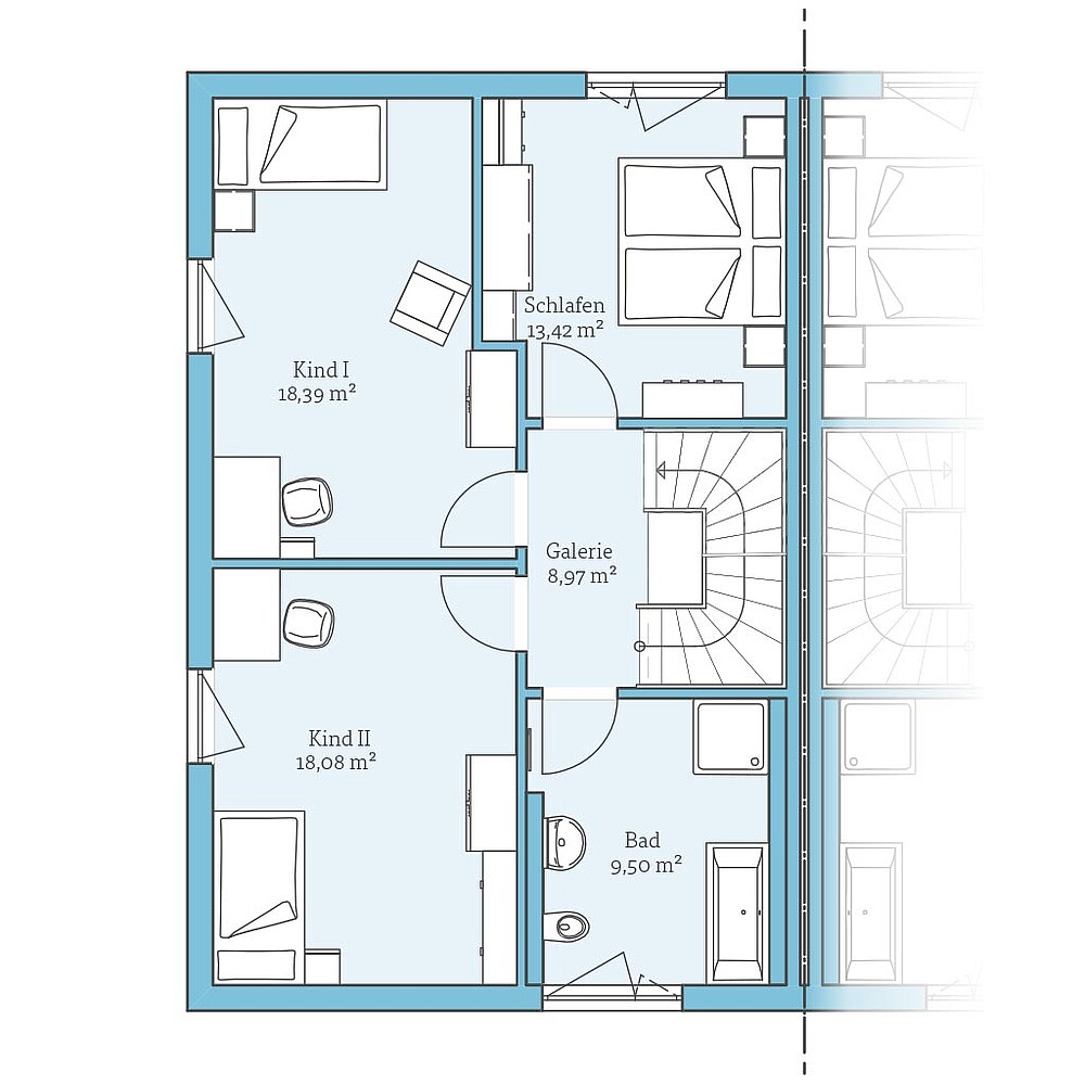 Die geräumigste Doppelhaus-Option aus unser QNG+-Line ist das Doppelhaus 195. Dafür haben wir unser Doppelhaus 179 einfach noch ein wenig vergrößert – für alle, die gerne besonders großzügig wohnen.
