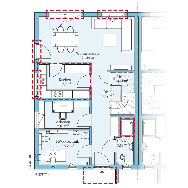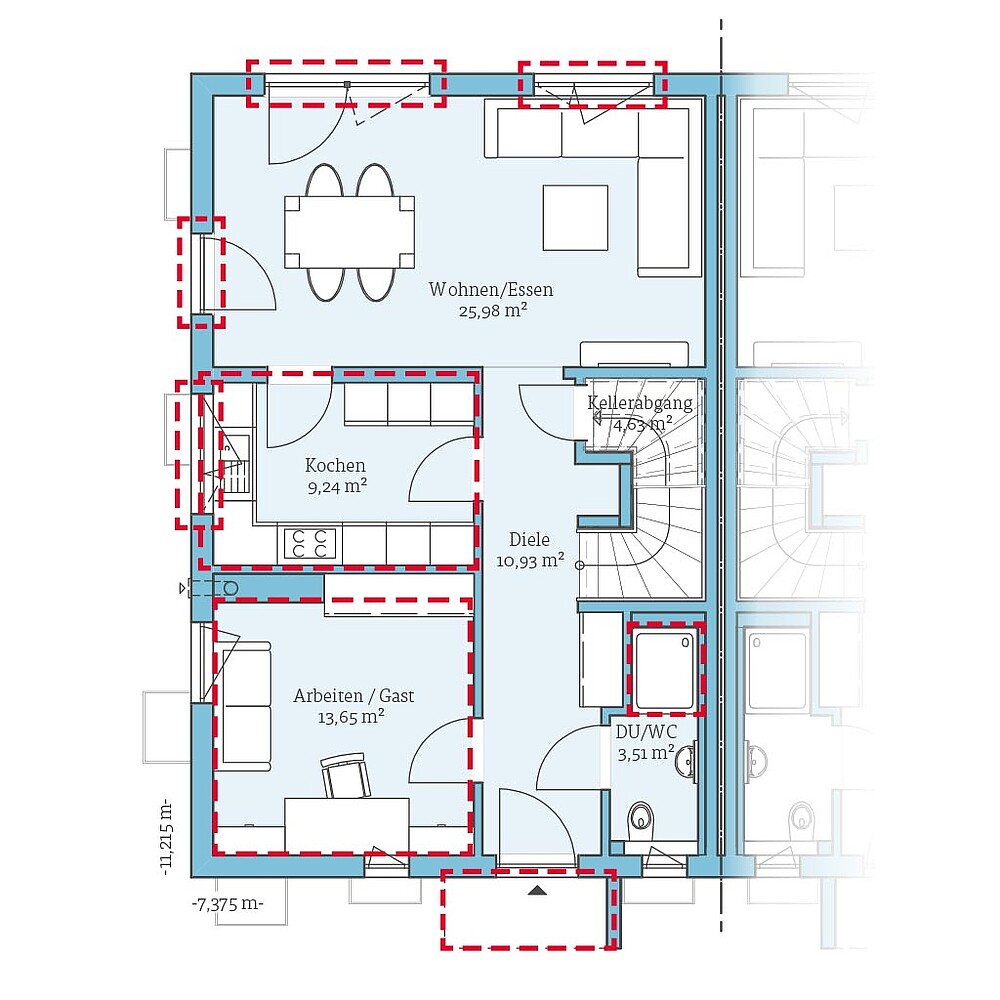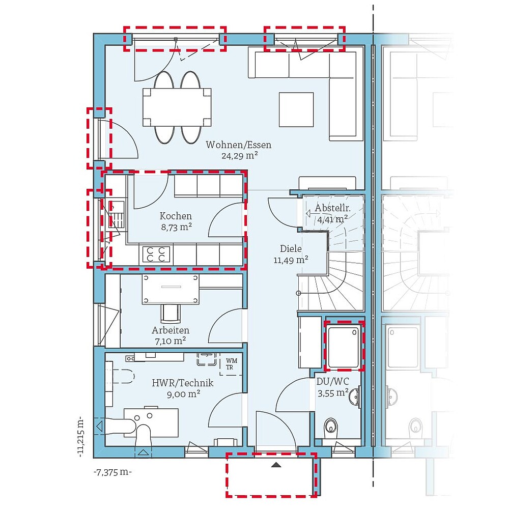 Da die Häuser aus der QNG+-Line seriell gefertigt werden, ist keine individuelle Planung möglich. Trotzdem stehen Ihnen einige Planungsmöglichkeiten offen: