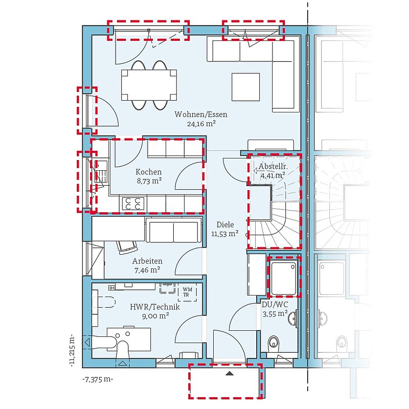 Da die Häuser aus der QNG+-Line seriell gefertigt werden, ist keine individuelle Planung möglich. Trotzdem stehen Ihnen einige Planungsmöglichkeiten offen: