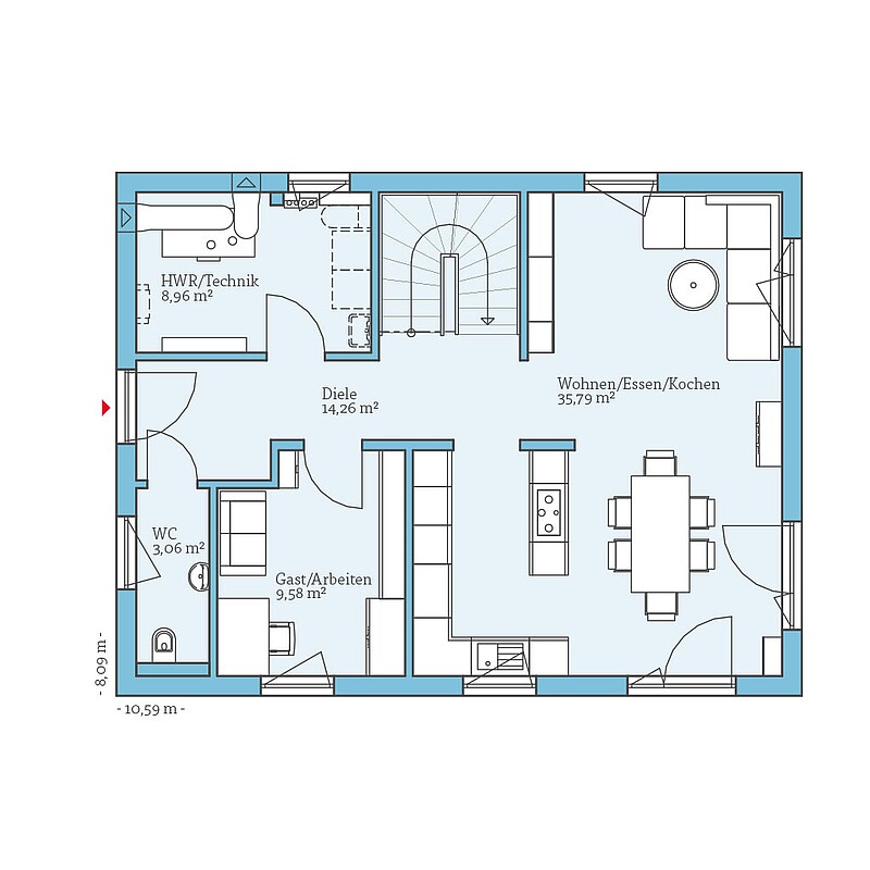Da die Häuser aus der QNG+-Line seriell gefertigt werden, ist keine individuelle Planung möglich. Trotzdem stehen Ihnen einige Planungsmöglichkeiten offen: