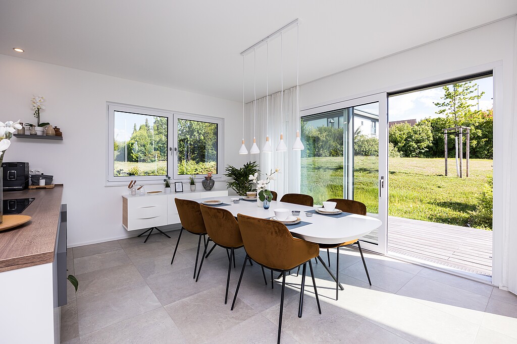 Das Variant 25-135 zeigt eindrucksvoll, wie sich auch auf kleineren Grundstücken wahre Raumwunder bauen lassen. Dank der durchdachten Planung dieses kompakten Hauses mit Satteldach machen die Häuser richtig Spaß.