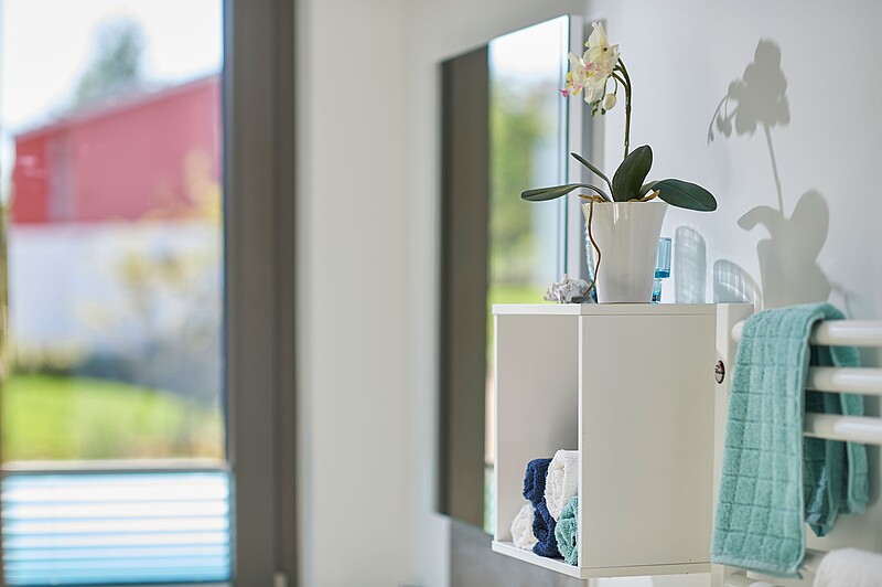 Waren bis vor einigen Jahren noch überwiegend gedeckte und eher zurückhaltende Farbtöne am Haus angesagt, darf es heute gerne kräftig und auffällig zugehen. Ein reines Weiß, kombiniert mit starken Kontrastfarben wie z. B. Rot oder Grau, verleiht einem Variant 25-165 mit Satteldach einen tollen, modernen Look, der in der Nachbarschaft garantiert die Blicke auf sich zieht.