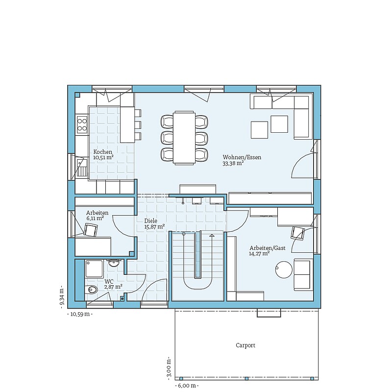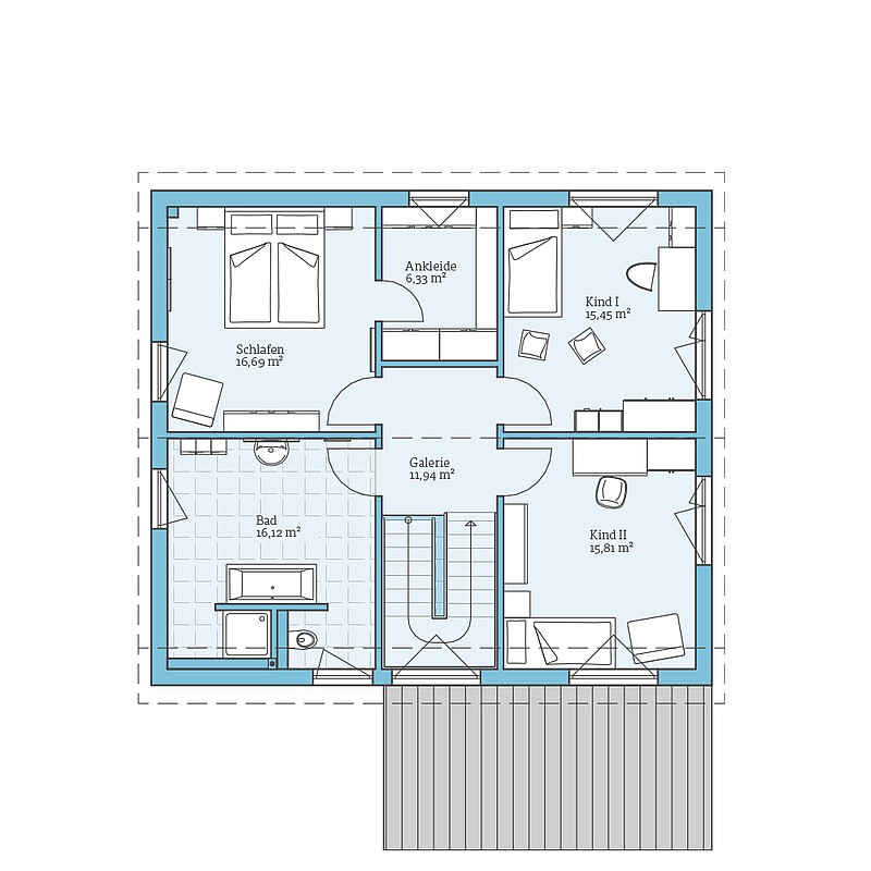 Die 40 m² große Einliegerwohnung lohnt sich gleich doppelt: Dank der zusätzlichen Wohnfläche im Haus steigert sie den Wert des Gebäudes, und vermietet leistet sie einen wertvollen Beitrag zur Finanzierung des Bauvorhabens.