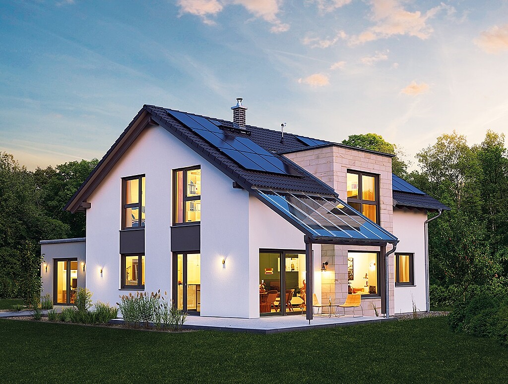 Der Hausentwurf Variant 35-172 zeigt einmal mehr, wie sich die klassische Satteldacharchitektur modern und zeitgemäß gestalten lässt.
