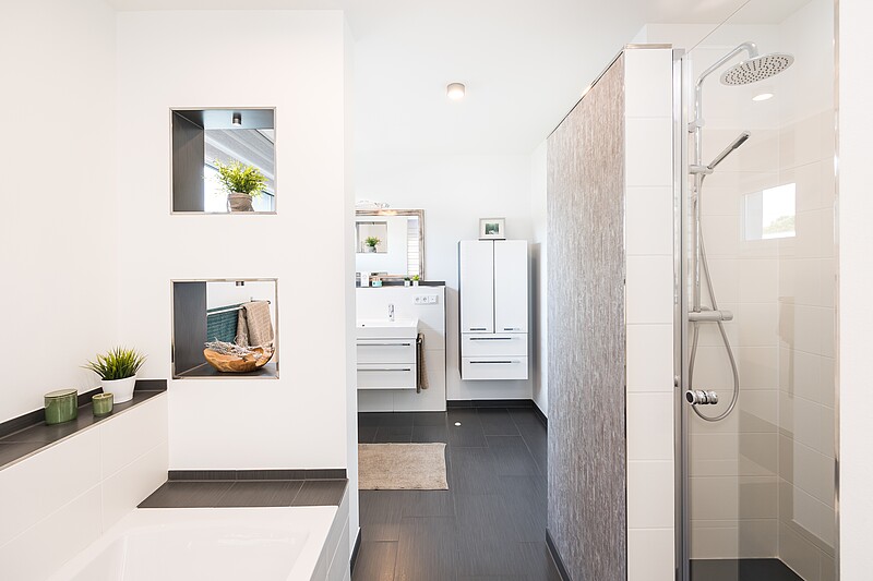 Wir legen großen Wert darauf, mit funktionalen Details wie z. B. versteckten Stauräumen, Ankleidezimmern, einem großen Garderobenbereich oder einem praktischen Wäscheabwurfschacht den Alltag für Sie komfortabler zu gestalten. Schließlich möchten wir, dass Sie sich in Ihrem Zuhause wohlfühlen und das Leben in vollen Zügen genießen können.