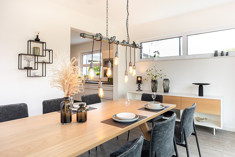 Im Musterhaus Köln-Frechen in der FertighausWelt können Sie dieses Haus besichtigen und sich vor Ort einen eigenen Eindruck verschaffen. Dank der hervorragenden Wärmedämmung und des Energiekonzeptes erfüllt das Musterhaus die Anforderungen an ein KfW-40-Effizienzhaus.