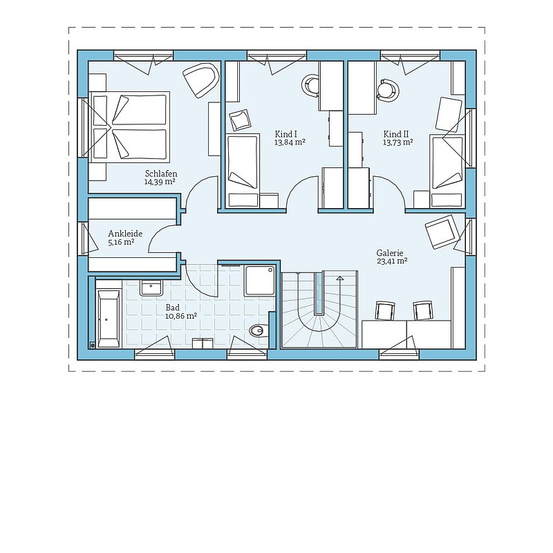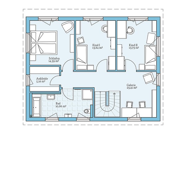2x Kinderzimmer; Schlafzimmer; Ankleide; Bad mit Wanne und Dusche; Galerie