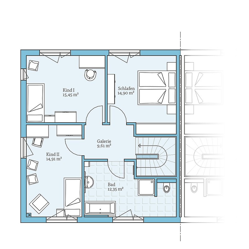 Planen Sie Ihr Holzhaus als Zwei- oder Mehrfamilienhaus und schaffen Sie jede Menge Wohnraum unter einem Dach – ob als Mehrgenerationenhaus, gemeinsam mit Freunden oder mit separater Wohung zum Vermieten. Für die Größe und die Anordnung der Wohneinheiten stehen zahlreiche Gestaltungsmöglichkeiten offen.