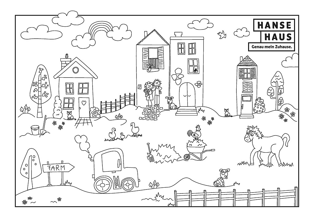 Immer auf der Suche nach einem neuen Bild zum Ausmalen? Für jede Menge Spaß und Abwechslung sorgen unsere Hanse Haus-Ausmalbilder zum Ausdrucken. Viele tolle Motive warten darauf, farbenfroh gestaltet zu werden – wie wäre es zum Beispiel mit einem Osterei-Ausmalbild, einem Bauernhof zum Ausmalen oder einer echten Hanse Haus-Baustelle? Einfach ein Ausmalbild auswählen, über den Button "Bild zum Ausmalen als PDF" öffnen und direkt drucken. Ein paar spannende Rätsel gibt es auch noch zu lösen. Viel Spaß – und vielleicht findet euer Kunstwerk einen schönen Platz in eurem Zuhause?