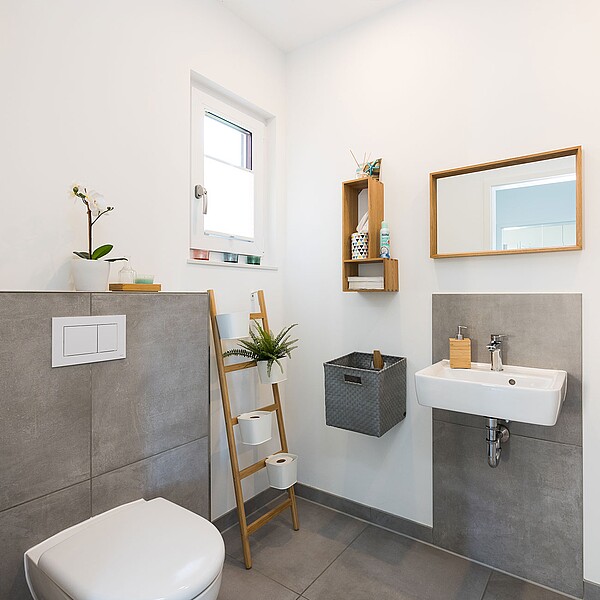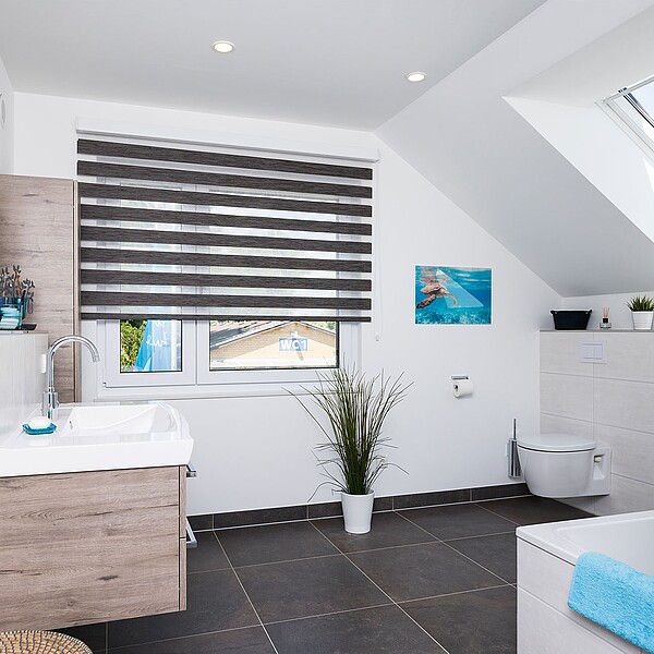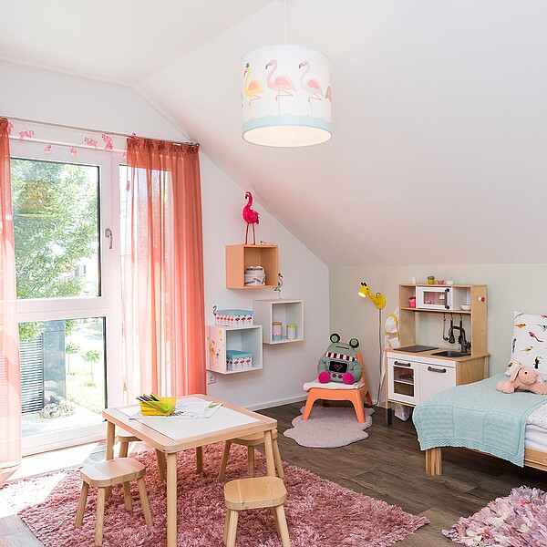 Bei unserem Vita 209 liegt der Fokus auf einer cleveren, modernen Grundrissplanung. Im Obergeschoss zum Beispiel ergibt sich durch den L-förmigen Grundriss eine räumliche Trennung zwischen dem Elternschlafzimmer mit Ankleide und dem offenen Kinderbereich.