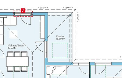 Keine AnpassungenWir behalten die Anzahl und die Größe der Fenster bei, die im Standard-Grundriss eingeplant sind. -
