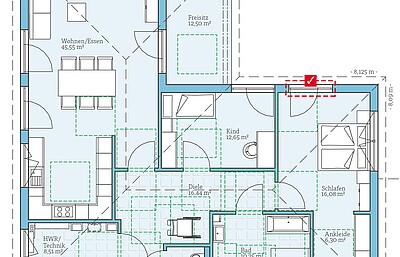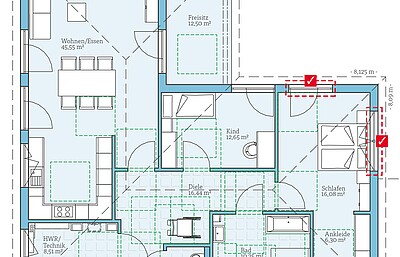Keine Anpassung im KinderzimmerWir behalten die Anzahl und die Größe der Fenster bei, die im Standard-Grundriss eingeplant sind. -