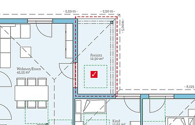 StandardoptionWir entscheiden uns für die Standard-Grundrissoption ohne Freisitz. -