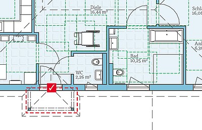 Größere Terrassentür + zusätzliches Fenster im SchlafzimmerWir möchten die im Standard-Grundriss eingeplante Terrassentür im Schlafzimmer vergrößern und ein zusätzliches Fenster.3.389 €3.389 €