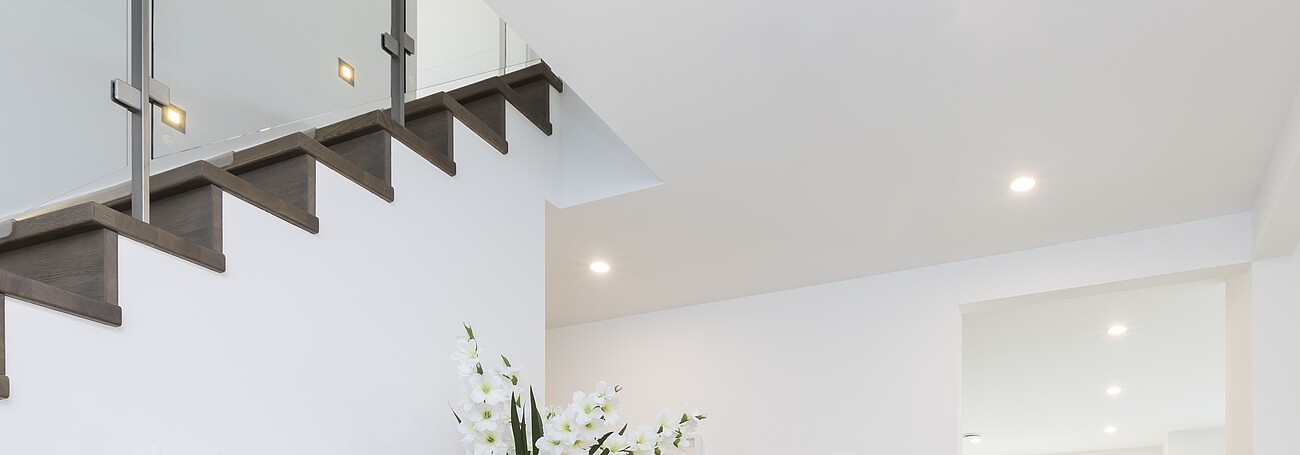 Bei unseren Häusern aus der QNG+-Line ist im Standard eine offene Buchentreppe enthalten. Gegen Aufpreis stehen Ihnen weitere Optionen zur Gestaltung Ihrer Treppe offen. Optional kann für mehr Stauraum eine Abstellkammer unter der Treppe eingeplant werden. Die Bilder dienen zur Veranschaulichung.