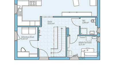Standard-Gäste-WCWir möchten das Gäste-WC im Erdgeschoss so planen, wie es im Standard-Grundriss vorgesehen ist (ohne Dusche). -