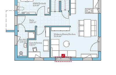 Keine Anpassungen im ErdgeschossWir behalten die Anzahl und die Größe der Fenster bei, die im Standard-Grundriss eingeplant sind. -