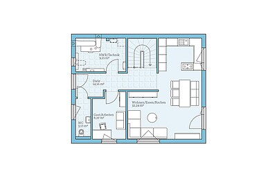 Standard-Gäste-WCWir möchten das Gäste-WC im Erdgeschoss so planen, wie es im Standard-Grundriss vorgesehen ist (ohne Dusche). -
