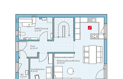Bei unserer QNG+-Line können Sie zwischen unterschiedlichen Ausbaustufen wählen. Definieren Sie selbst, welche Leistungen Hanse Haus übernehmen soll und welche Arbeiten Sie in Eigenleistung erbringen möchten.