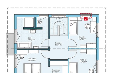Dusch-Bad statt Gäste-WC im ErdgeschossWir wählen das Dusch-Bad bestehend aus:
