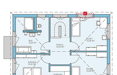 Keine Anpassungen im DachgeschossWir behalten die Größe und die Anzahl der Fenster bei, die im Grundriss eingeplant sind. -