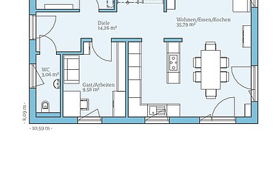 Die Häuser aus unserer QNG+-Line können mit einer Photovoltaik-Anlage und einer Dämmung unterhalb der Fundamentplatte geplant werden.