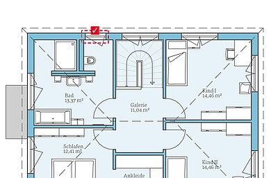 Standard-Badezimmer im ObergeschossWir möchten das Badezimmer so planen, wie es im Standard-Grundriss vorgesehen ist. -
