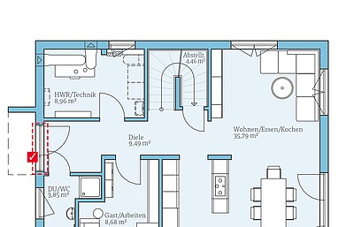 Tür unter TreppeWir wählen eine geschlossene Treppe mit Treppenabgangsverkleidung und einer Tür (nur in der Ausbaustufe Schlüsselfertig möglich).3.439 €3.439 €