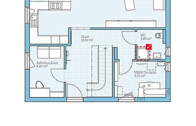 Standard-Gäste-WCWir möchten das Gäste-WC im Erdgeschoss so planen, wie es im Standard-Grundriss vorgesehen ist. -