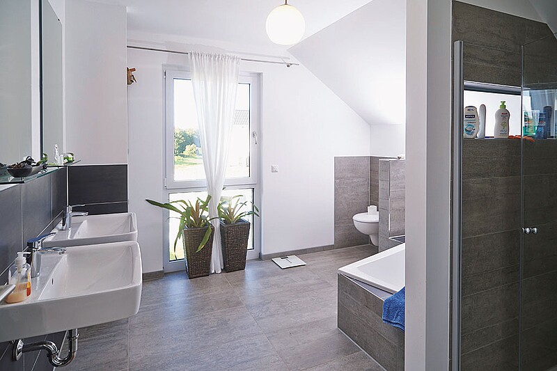 Für immer genügend Warmwasser und Wärme im Haus sorgt eine Kombination aus einer Gasbrennwerttherme, einer Lüftungsanlage mit Wärmerückgewinnung und einer Solarthermieanlage.