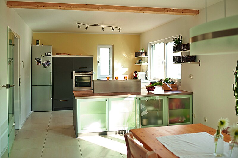 „Auch das ist Nachhaltigkeit – denn so ist im Alter Wohnen auf nur einer Ebene möglich, ganz ohne Treppensteigen“, erklärt der Bauherr den Gedanken bei der Hausplanung.