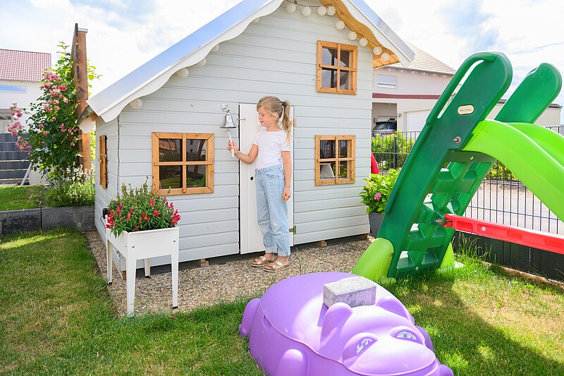 Gemeinsame Zeit verbringt die Familie sehr gerne im Garten, in dem auch ein toller Spielbereich für die beiden Töchter entstanden ist. Wie wichtig es ist, bei der Planung des Eigenheims nicht nur das Haus, sondern gleich von Anfang an das gesamte Grundtück mit zu berücksichtigen, möchte Familie Heckwolf/Meyer zukünftigen Bauherren als Tipp mitgeben: