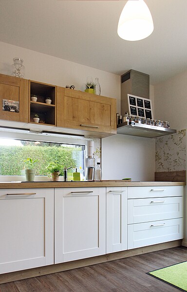 „Natürlich ist es schön große und offene Räume zu haben. Aber es ist auch schön, wenn man nach einem gemütlichen Essen mit Freunden oder der Familie nicht ständig an den noch zu erledigenden Abwasch erinnert wird, sondern einfach die Tür zur Küche zumachen kann“, schmunzelt Bauherrin Michelle Olschewski.