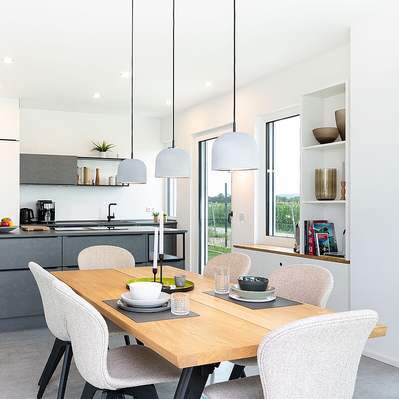 Besichtigen Sie moderne, energieeffiziente Musterhäuser namhafter Fertighaushersteller.