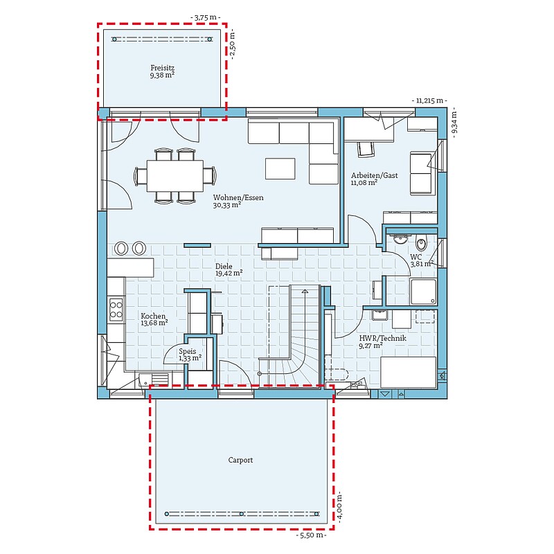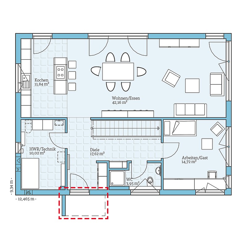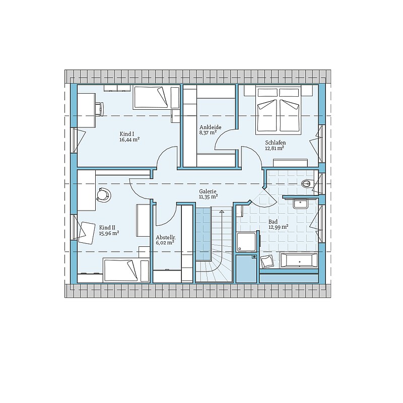 Auf 174 m² Wohnfläche steht viel Raum zum Wohlfühlen zur Verfügung. Der gut durchdachte Grundriss ist optimal auf den Alltag einer vier- bis fünfköpfigen Familie zugeschnitten.