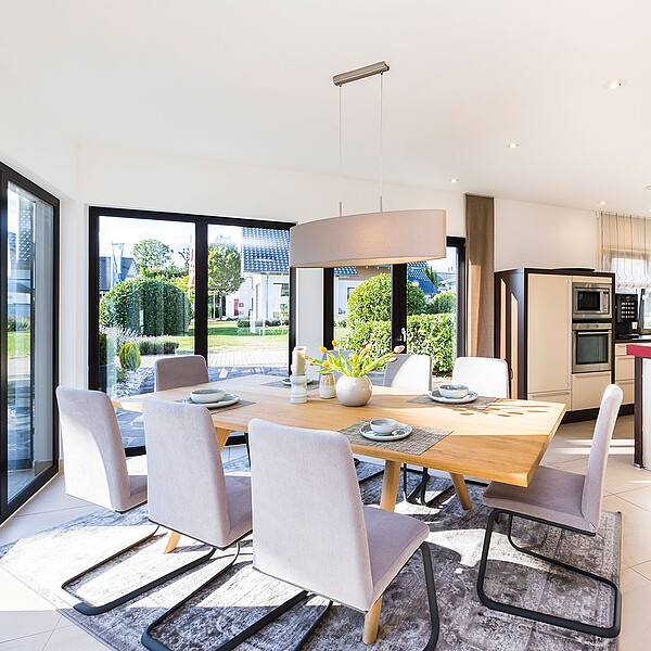 Im Vergleich zu einem Massivhaus profitieren Bauherren bei einem Fertighaus von fixen Baukosten, die im Bauvertrag festgeschrieben sind. Sobald Sie voll und ganz mit der Planung und der Bemusterung zufrieden sind, wird eine Kalkulation erstellt – diese Summe definiert den Festpreis.