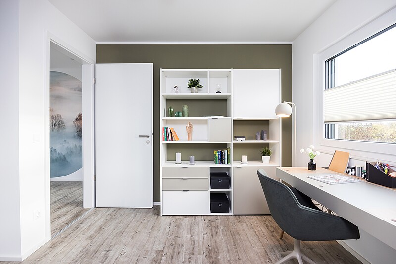 The bedroom is designed so that it has either a dressing niche or sufficient storage space for wardrobes. The bathroom is right next door for quick access in the morning and evening. There is also a further room that can be used as a children's room, guest room or study, for example. Plenty of storage space is provided by a small storeroom and a practical wardrobe niche in each flat as well as a separate cellar compartment.