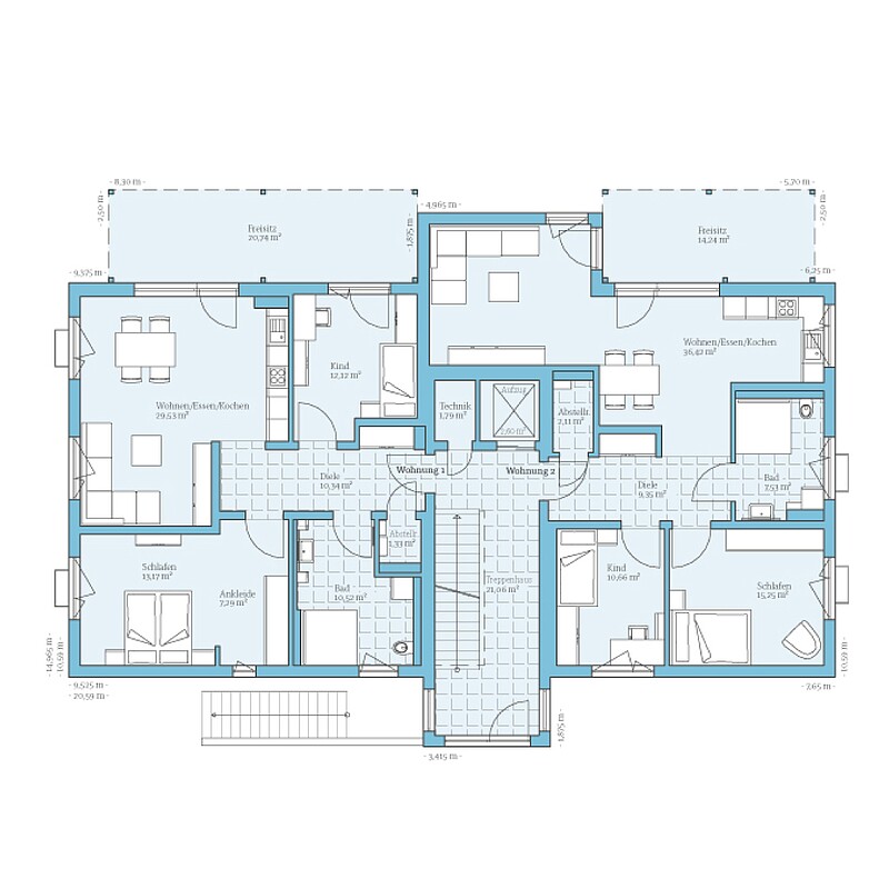 Would you like to build a multi-family house with fewer than six flats? Then our multi-family house designs with four residential units or three residential units are just right for you.
