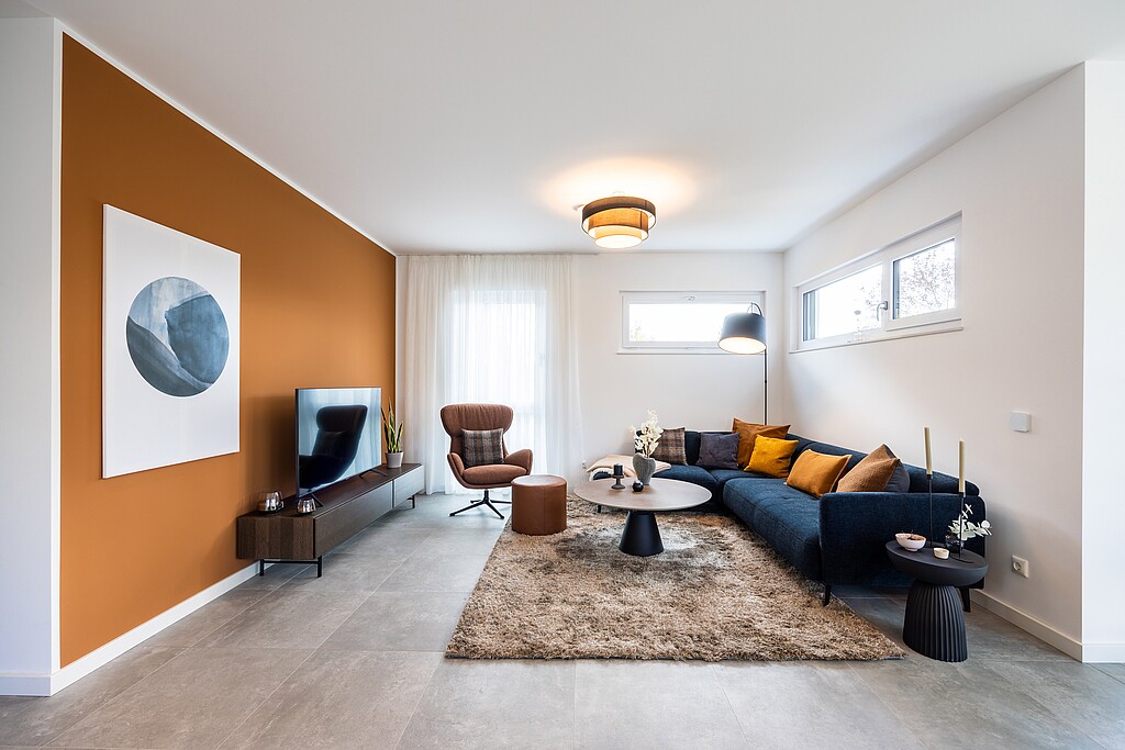 The centrepiece of the flats is the open-plan living, dining and cooking area, in which large windows create a friendly living atmosphere. This is adjoined by a sheltered outdoor seating area, which is sure to quickly become a favourite place: a terrace on the ground floor and a balcony on the upper floors.