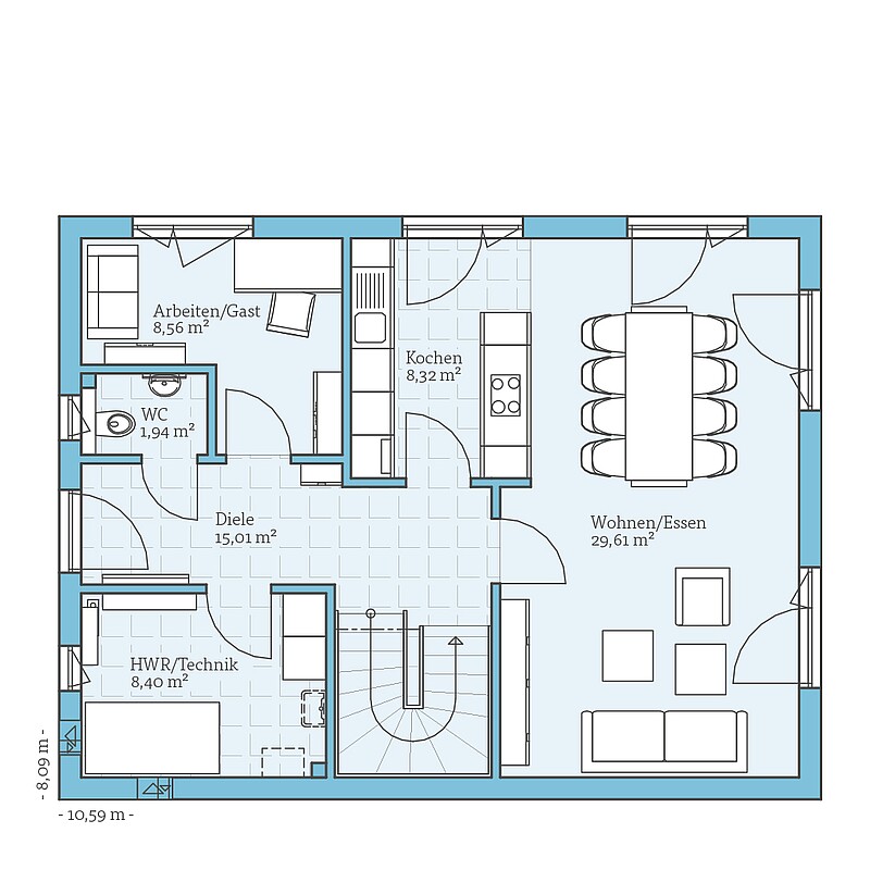 Get an impression of this house through the floor plans. We will show you our planning suggestions, which of course can be customised on request.